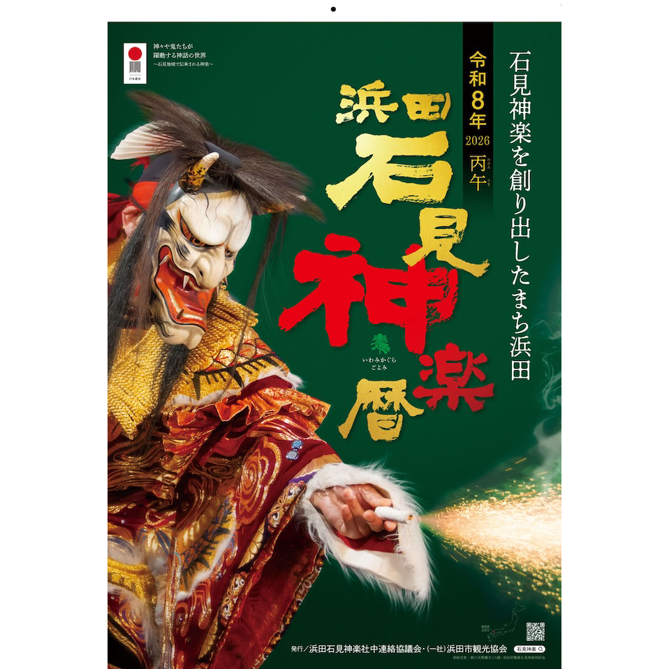 昭和61年発行以来の歴史を刻む、浜田の石見神楽カレンダー。めくるめく、時代は変わってもその魂は、浜田の舞子に引き継がれています。“本カレンダーのためだけに写真を撮り下ろした” 石見随一の商品です。